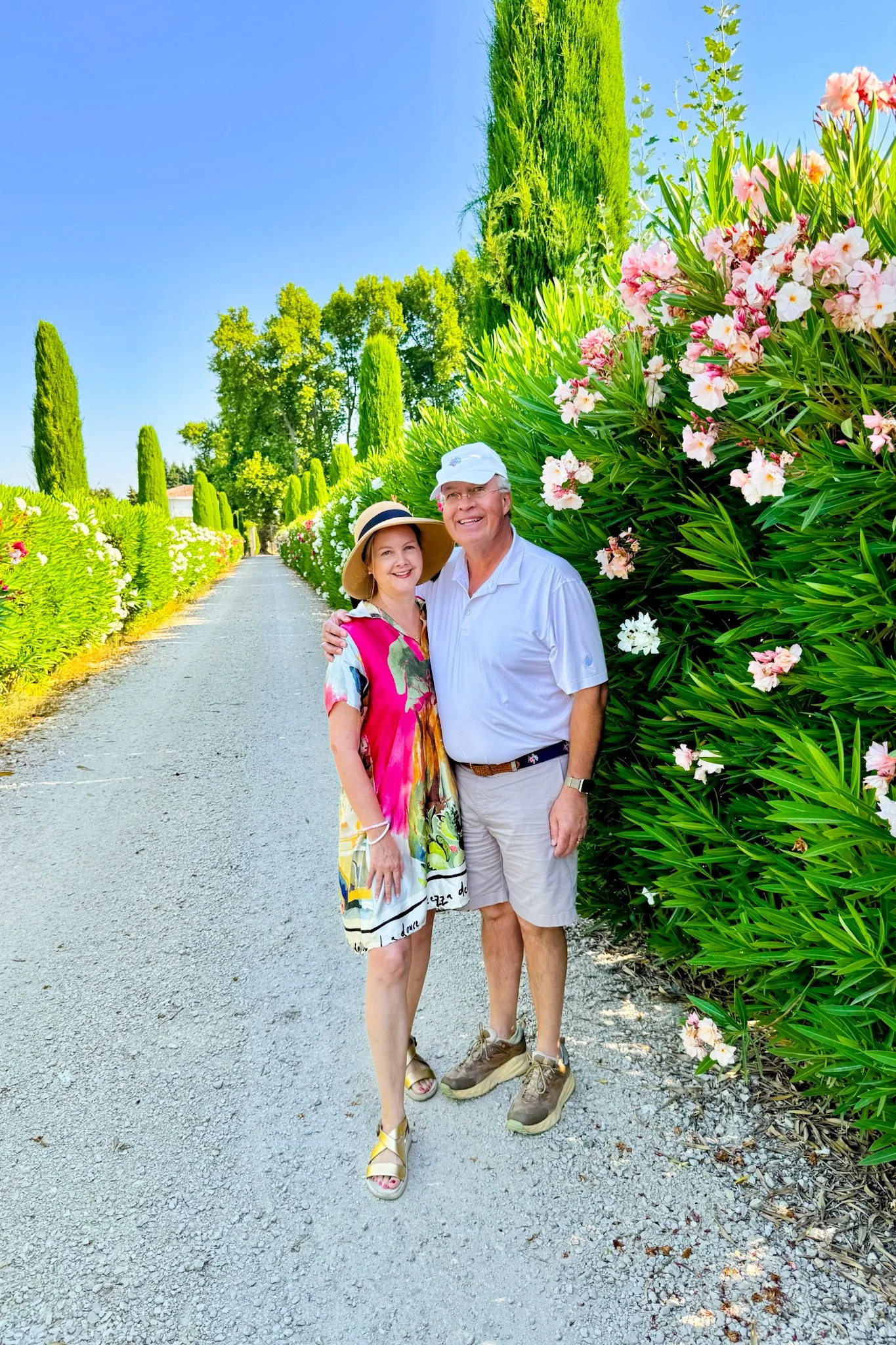Today we were up early ready to explore Gordes. I vividly remember visiting in 2018 when Dale and I were in Provence — the village sits on a hill and is truly breathtaking. This time we had the opportunity to visit the market and it is worth planning around! So many vendors with food, textiles and more. I came home with a woven basket, comfy pjs, placemats, two pillow covers for my living room and hair clip. Next stop today: Senanque Abbey.